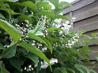 Das oben, bin unsicher, ob das nun ein Maiblumenstrauch oder gefüllter Jasmin ist.